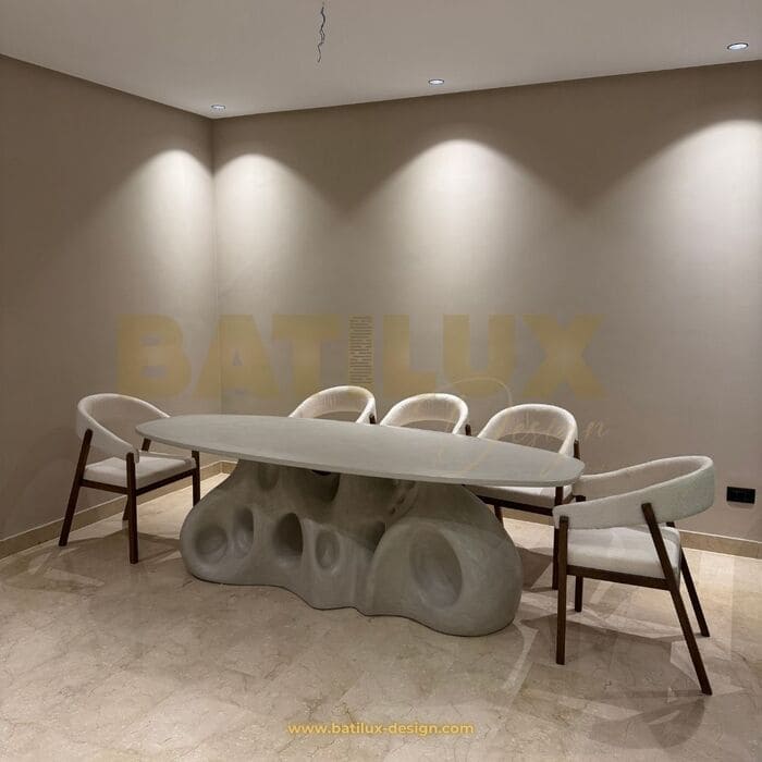 Avec sa base aux lignes organiques et son plateau aux finitions soignées, VULKA transforme votre salle à manger en un espace chaleureux et contemporain. Chaque pièce est unique, révélant les textures vivantes du béton et l’authenticité du travail artisanal.